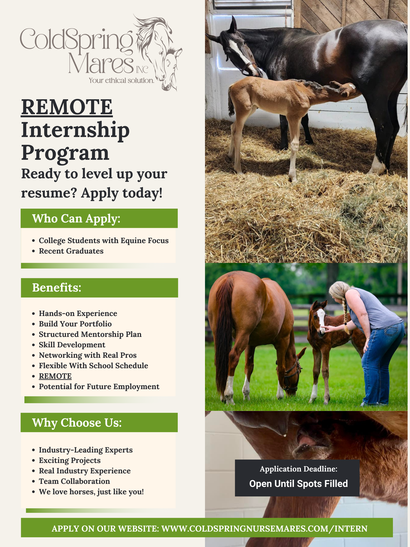 🐴 Want a Fun & Impactful Remote Internship? Join ColdSpring Mares! 🐴