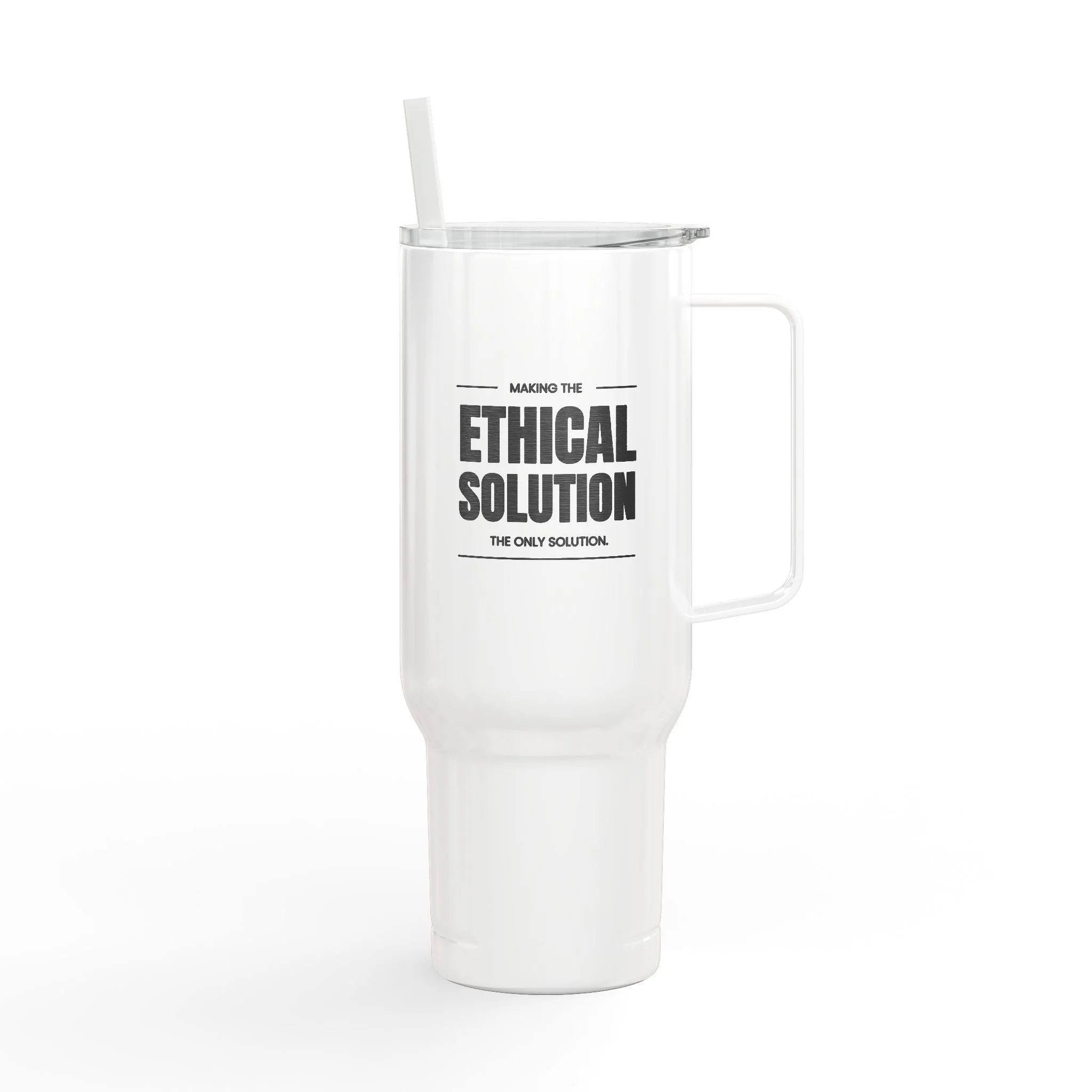 This 40oz insulated tumbler is built for long days, long drives, and slow mornings. Double-wall vacuum insulation locks in temperature so coffee stays hot through your commute and iced tea stays crisp on sun-filled afternoons. The glossy finish and subtle engraved monogram add understated personality without shouting — a calm, everyday companion. A wide comfort handle and tapered base make carrying and fitting into cup holders effortless. Thoughtfully made from mostly recycled materials, it feels good to use and to own. Care is simple: hand wash to keep the engraved detail looking sharp.