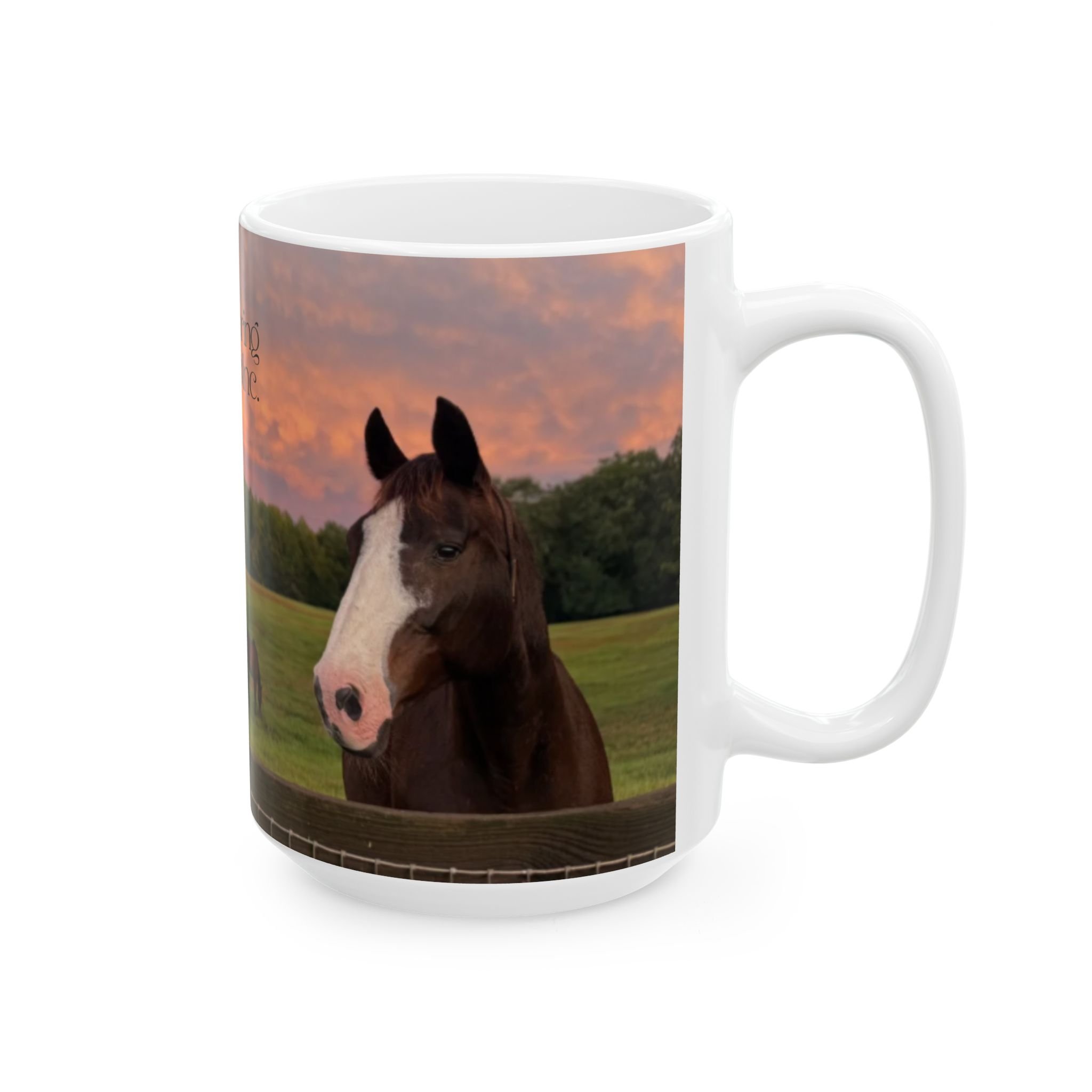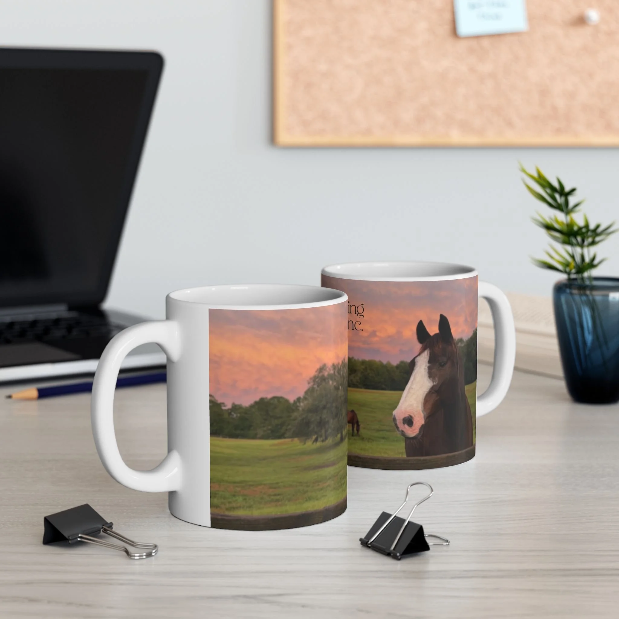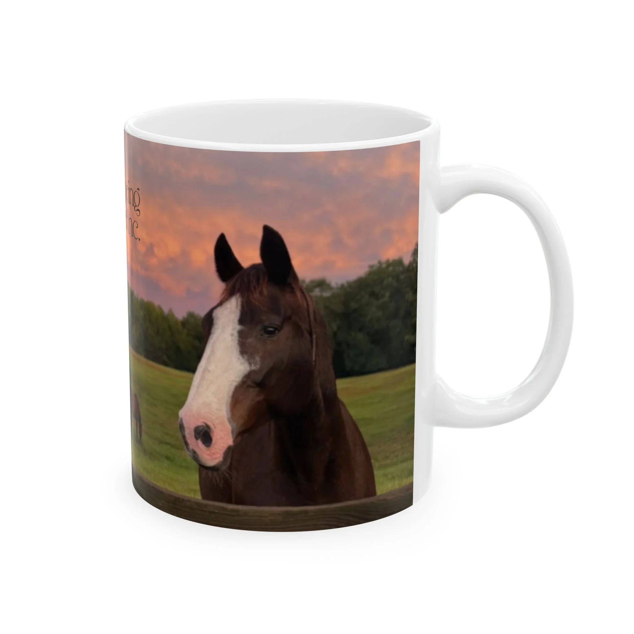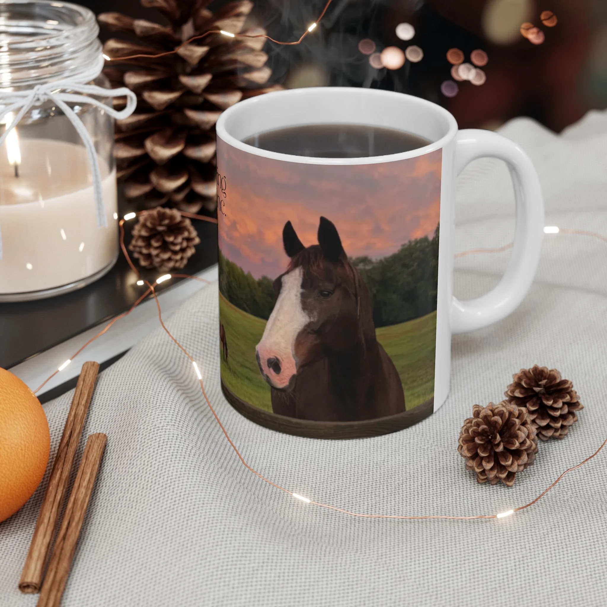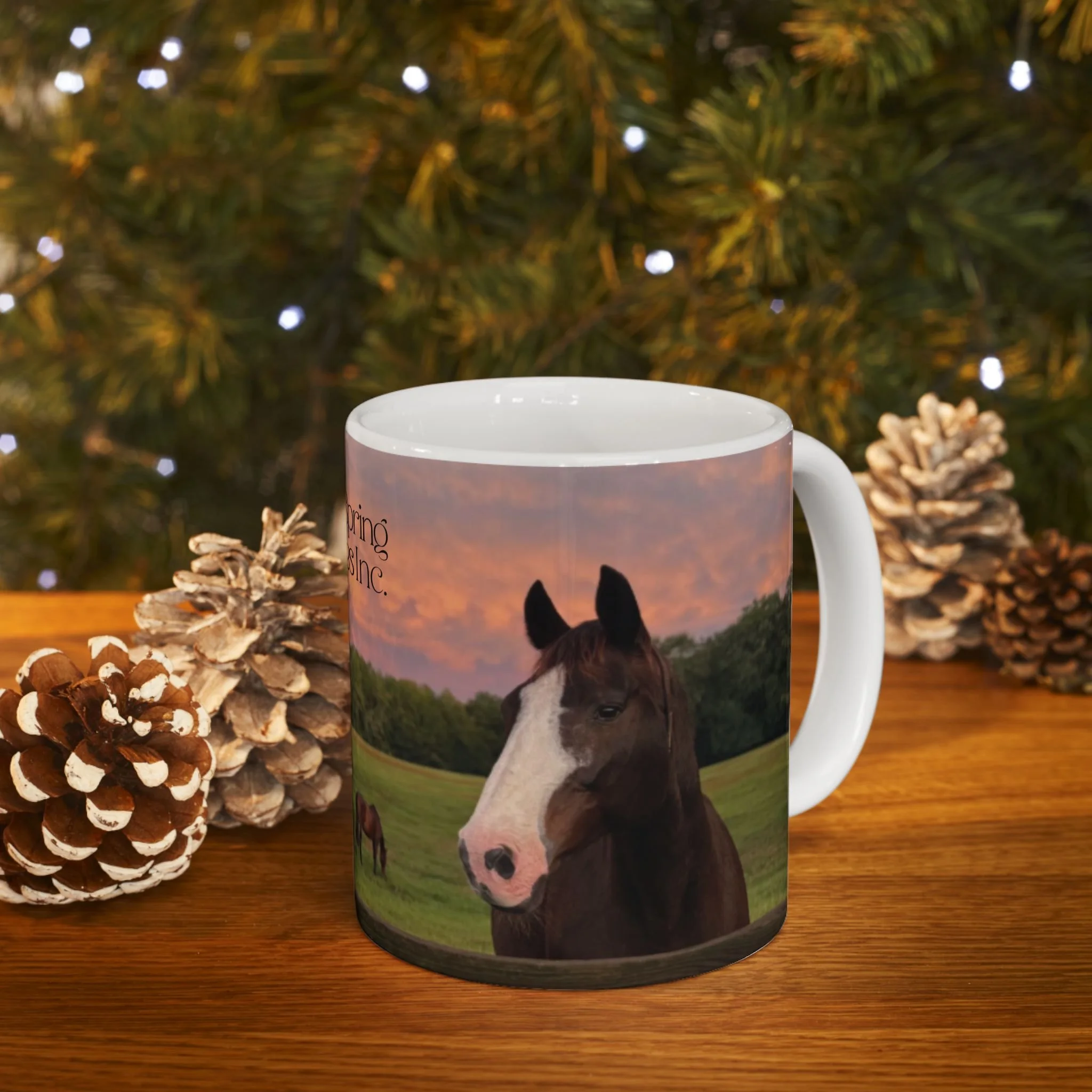 A sturdy glossy mug featuring Calcy, our 2003 model Warmblood nurse mare.